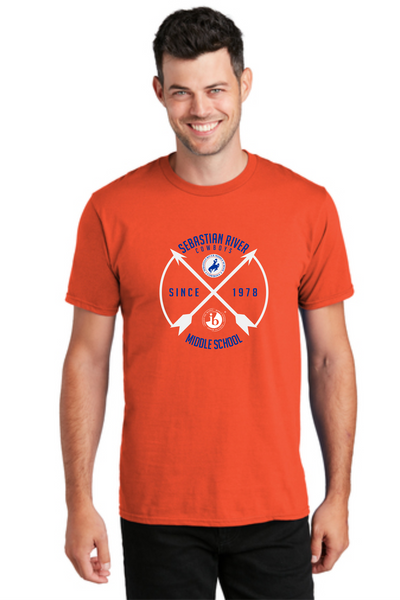 Port & Company ® Fan Favorite ™ Blend Tee - 60/40 ring spun cotton/poly (100% Orange) - CVC blend - Removable label for comfort and relabeling - 1x1 rib knit neck - Shoulder-to-shoulder taping